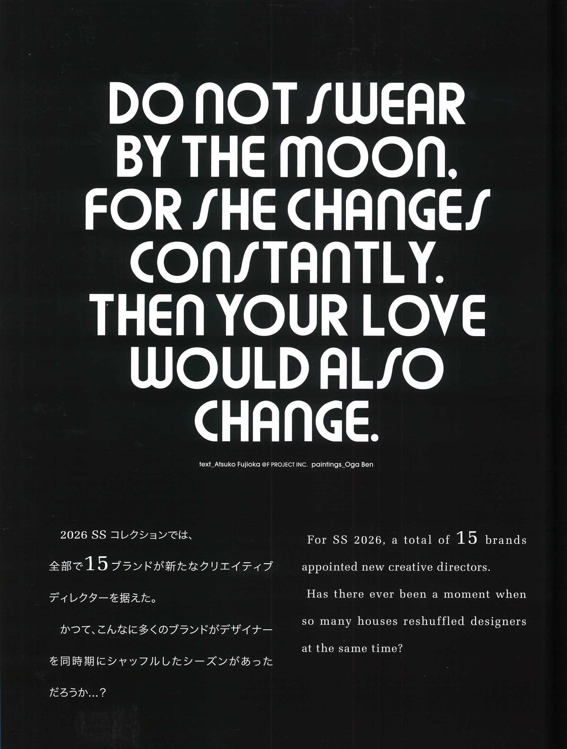 誌面では シェイクスピアの台詞と アーティスト Ben Ogaのペインティングと共に